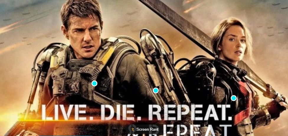 톰 크루즈 주연의 할리우드의 전형적인 블록버스터 영화입니다. 막대한 제작비, 할리우드 스타 캐스트, 그리고 장대한 시각 효과가 있습니다. 톰 크루즈는 영화 속에서 타임 루프에 갇혀있는 병사를 윌리엄 케이지로 연기합니다. 그의 익숙한 하드보일드 액션과 카리스마가 전시되어 있습니다. 그의 특징적인 활기 없는 액션 퍼포먼스도 인상적입니다.