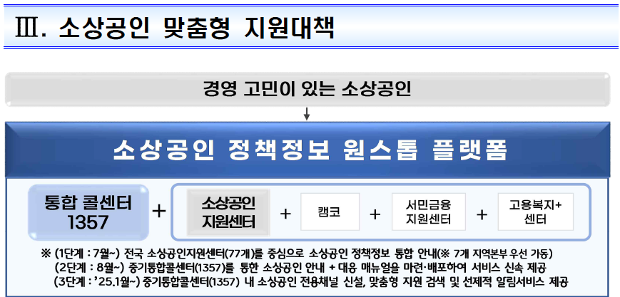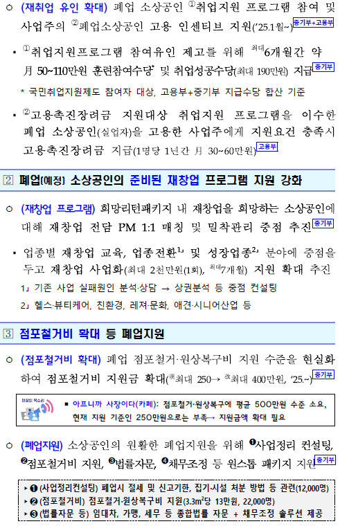 금융 3종세트, 판로확대, 폐업시 취업지원