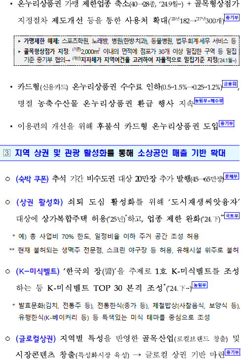 ㅇ (도로점용료) 일반음식점, 노점 등 운영 소상공인 부담완화를 위해 소상공인 대상 도로점용료 25% 감면 연장 추진(~‘24→~’26년) 국토부
