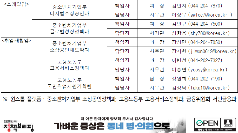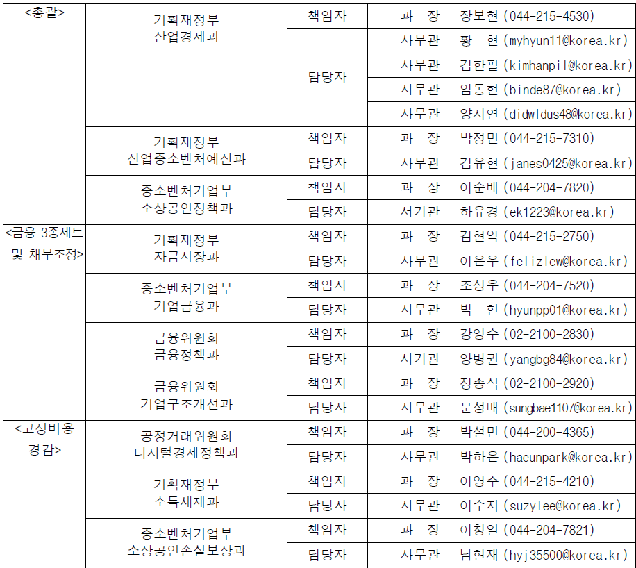 지원하고, 점포철거비 지원 규모도 확대(최대 250 → 400만원)할 계획이다.보도자료 마지막에는 담당자안내가 있습니다.