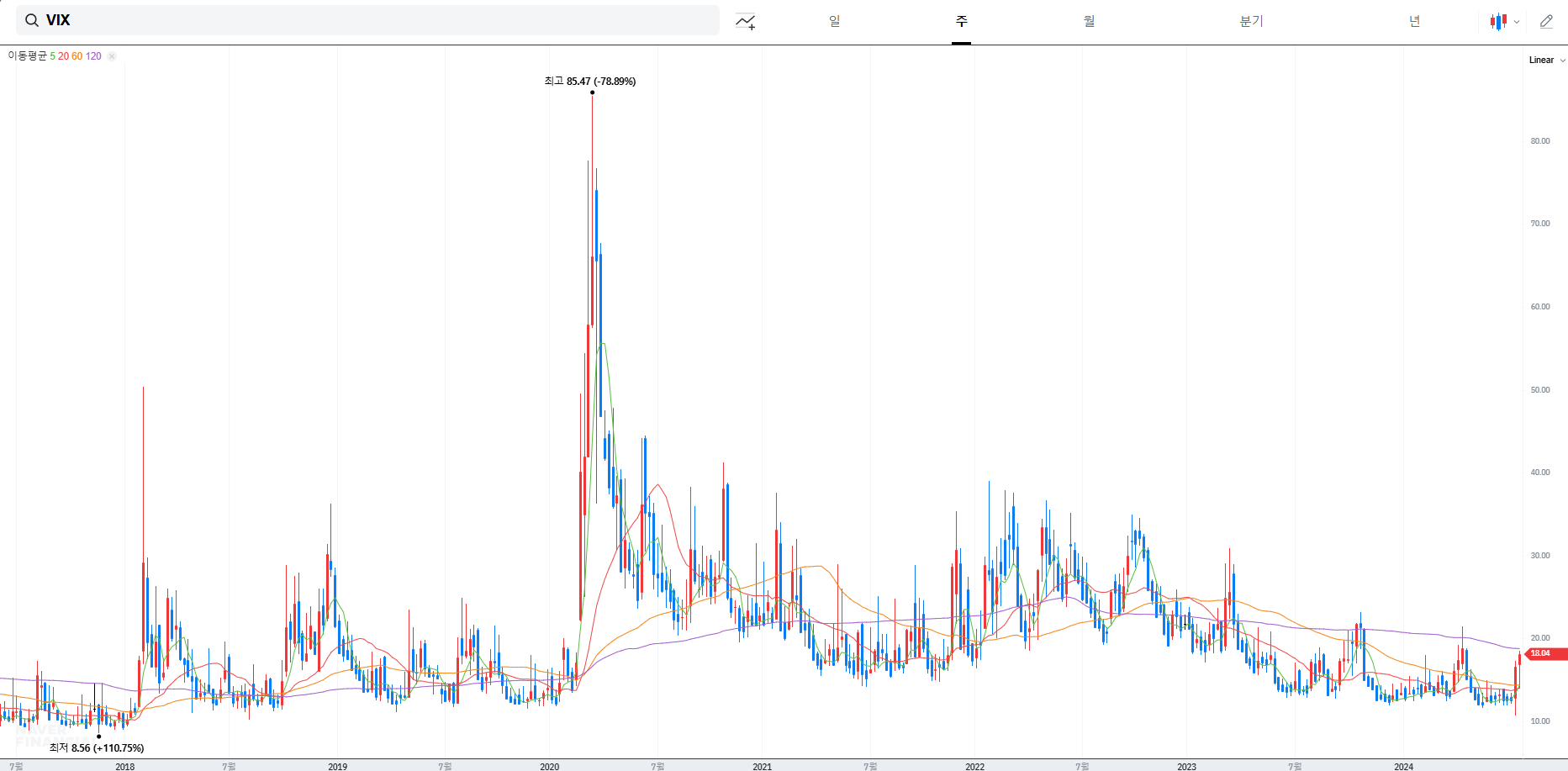 2. 위기 시기의 급등: 금융 위기나 경제 불안정 시기에는 VIX 지수가 급등하는 경향이 있습니다. 예를 들어, 2008년 글로벌 금융 위기 당시 VIX는 사상 최고치를 기록했으며, 2020년 COVID-19 팬데믹 초기에도 급등했습니다.