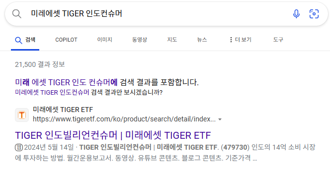 3. 검색창에 TIGER 인도빌리언컨슈머를 검색해보면 누구나 쉽게 볼 수 있다.